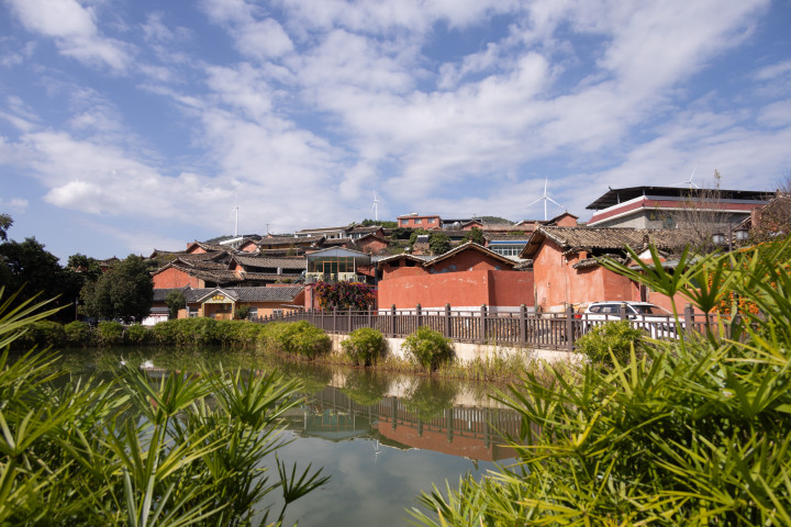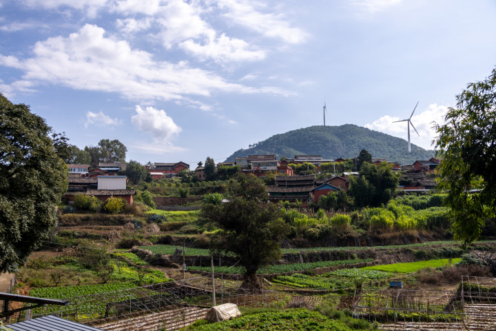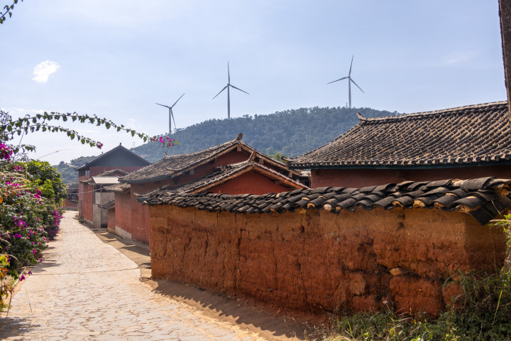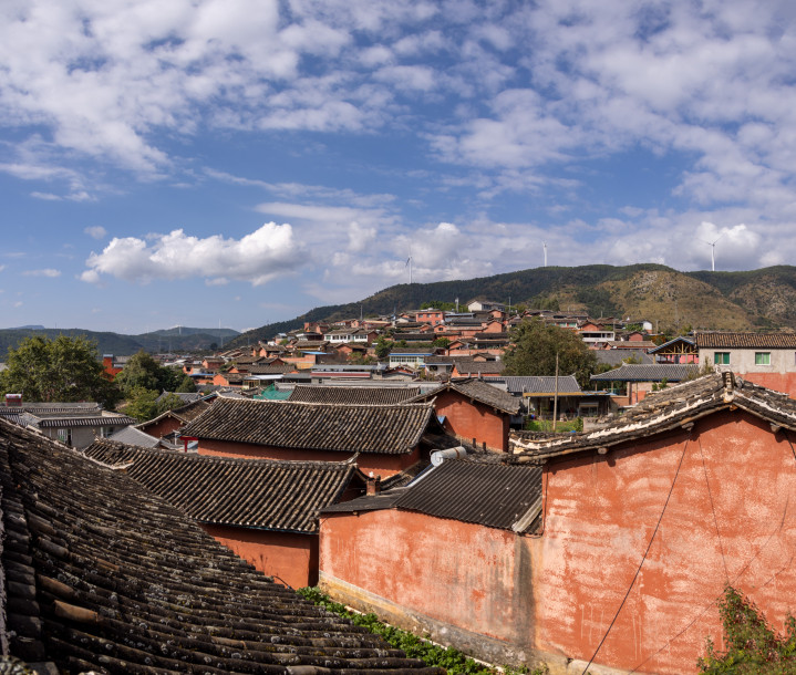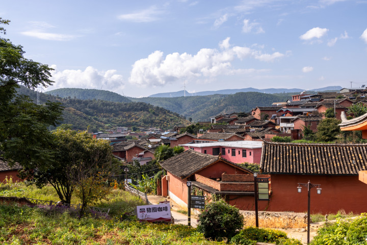 在村子一侧找了个稍微高点的土坡,展眼望去满目都是红墙黑瓦屋舍,怪不得这里被称为“小色拉”。