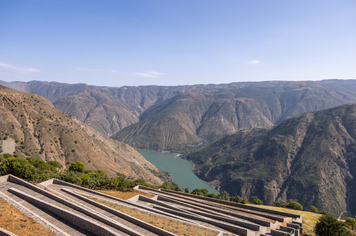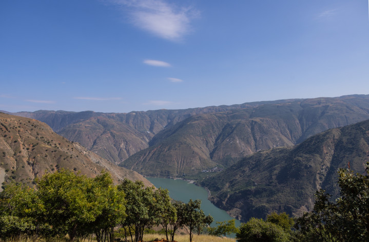 行驶几公里山道后,我们来到金沙江大峡谷观景台,俯瞰蓝绿色的江水在峡谷中流淌。