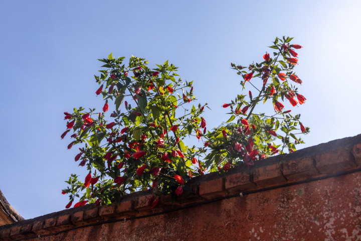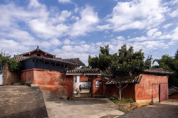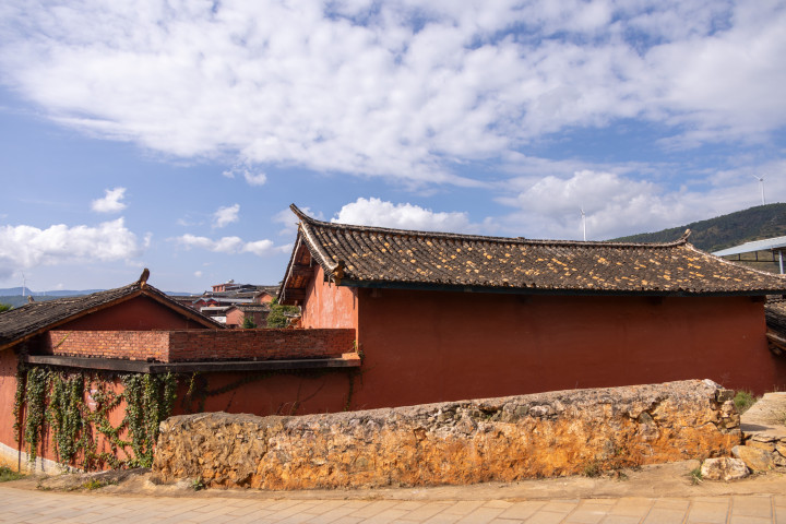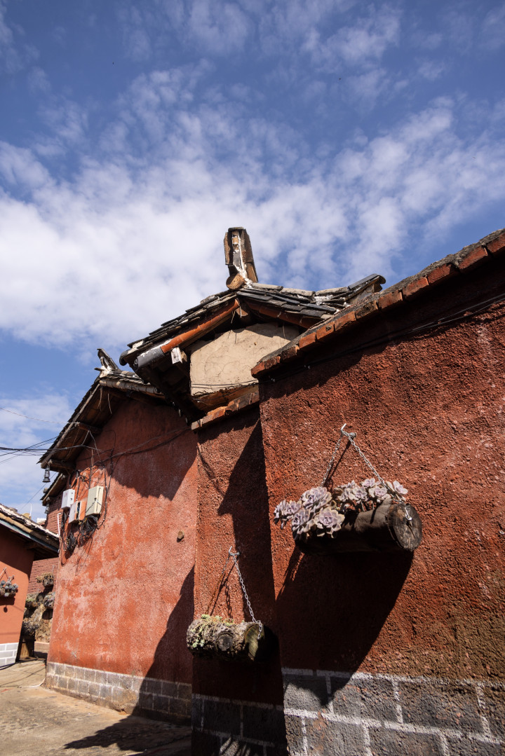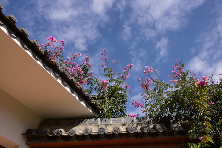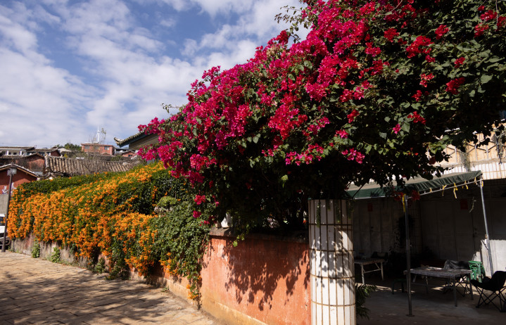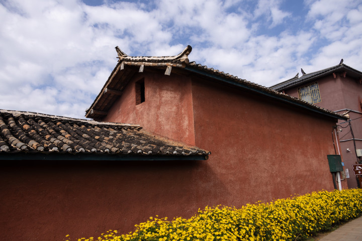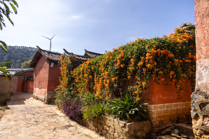 赶上一个蓝天白云的好天气,红墙显得尤为亮丽,连房前屋后的鲜花都特别鲜艳夺目。