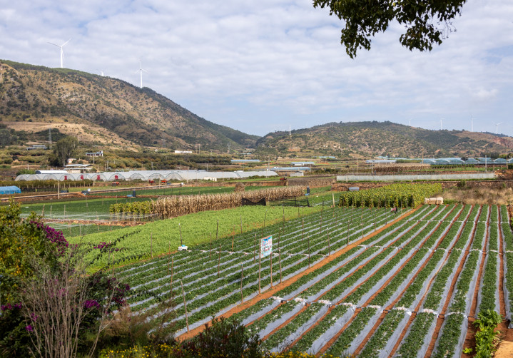 进村前就可看见大片农田和温室,可见村里的种植业相当现代。