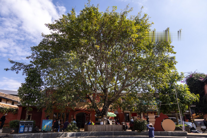 离开村子,我们前往附近的金沙江大峡谷。路上经过“红椿古树公园”,这棵红椿相传植于清朝嘉庆年间,已有200多年历史,此处是观看迤沙拉全景的好地方。
