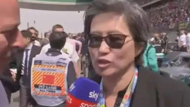 2018年F1中国站大奖赛在上海举办,主持人拦住一个路过的中国面孔,告诉她,她是第一位被采访的幸运儿,并贴心地问她会不会讲英文。